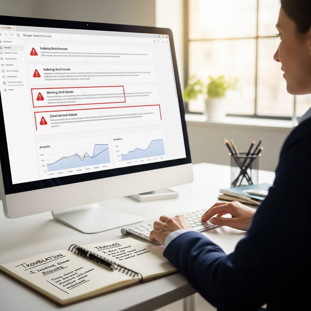 「インデックス登録に関する問題」は、Googleがあなたのページを適切にクロールできていない状態です。robots.txtの誤設定、noindexタグの誤使用、canonicalタグの問題などを確認しましょう。また、サーバーエラーが続いている場合はホスティング会社に相談する必要があります。
